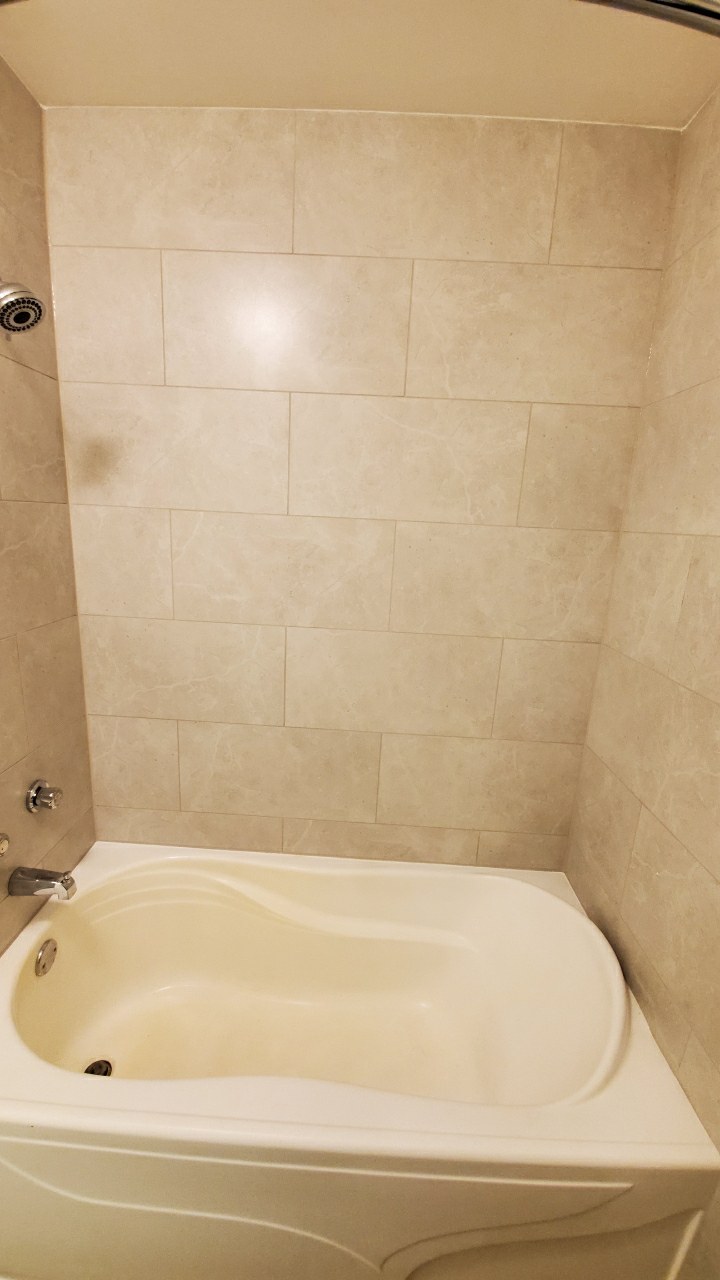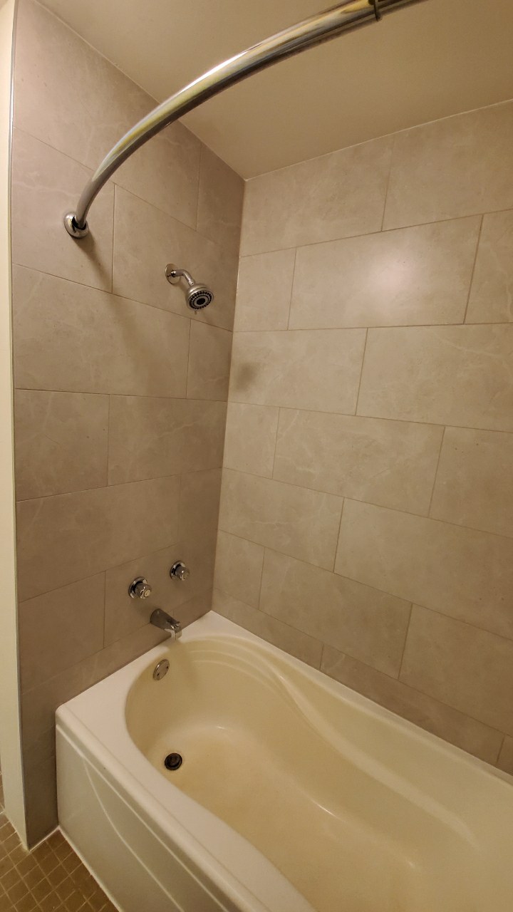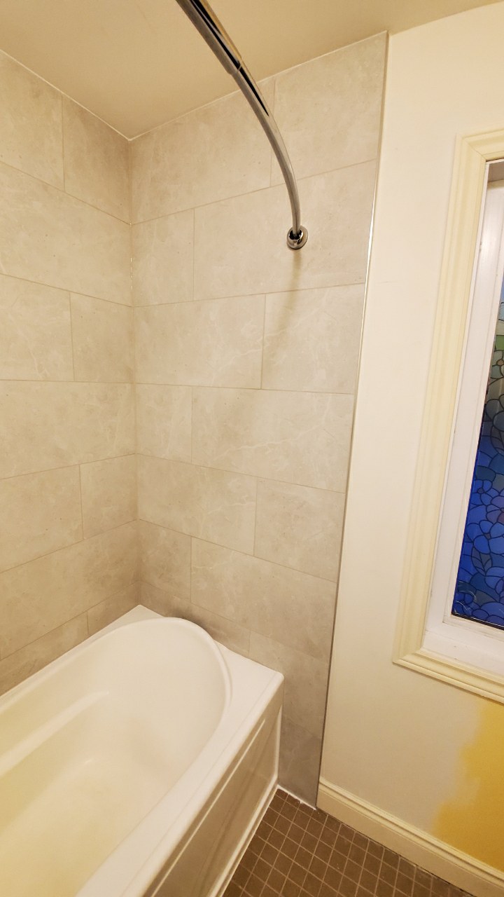 We installed a full tile surround using large-format tiles for a seamless and low-maintenance look. The layout was carefully planned to ensure clean lines, consistent spacing, and a polished finish that elevates the entire bathroom. Plumbing fixtures were updated, transitions were sealed properly, and every detail was handled with longevity in mind.