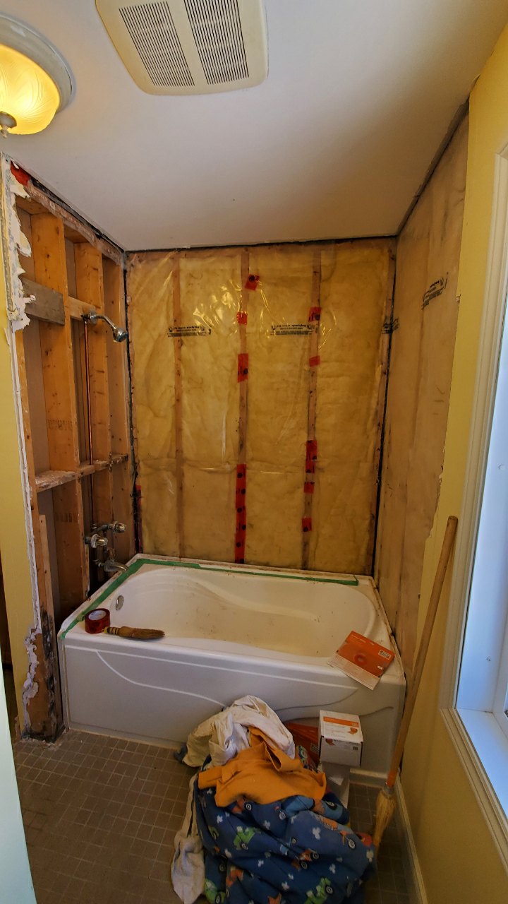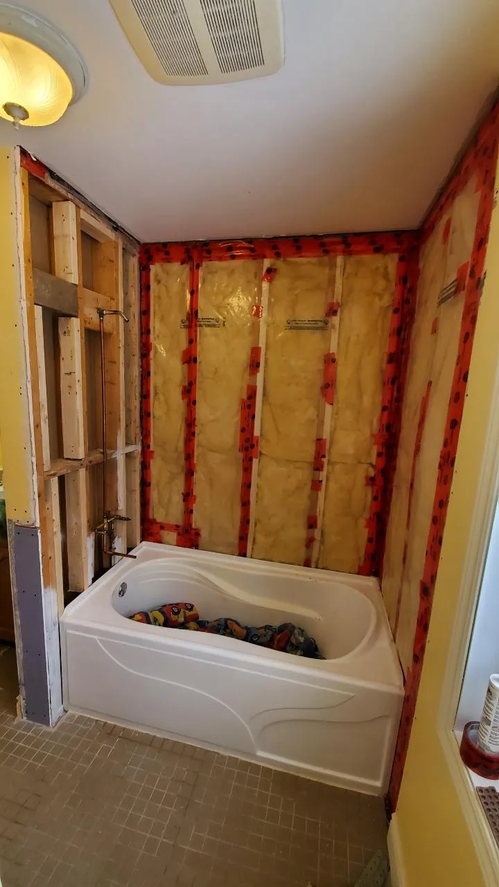 This project focused on transforming an outdated and partially exposed bathtub area into a clean, modern, and fully waterproof shower space. The original setup required a complete teardown to the studs, allowing us to properly address insulation, moisture protection, and long-term durability before moving into the finish stage.